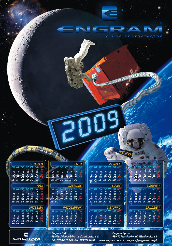 Projekty kalendarza na rok 2009 pt. "Kosmos" firmy ENGRAM format A2