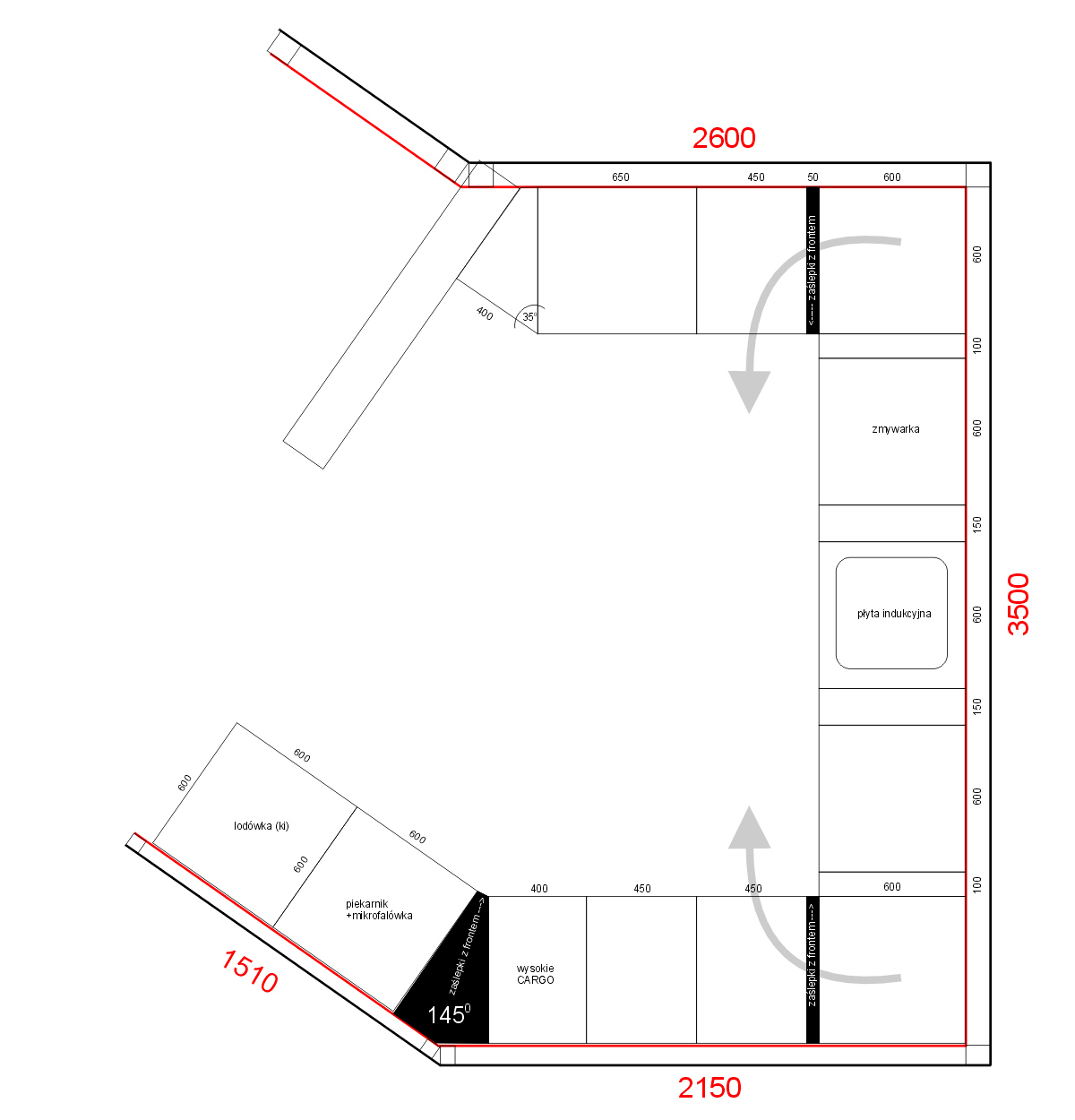 rysunek techniczny kuchnia
